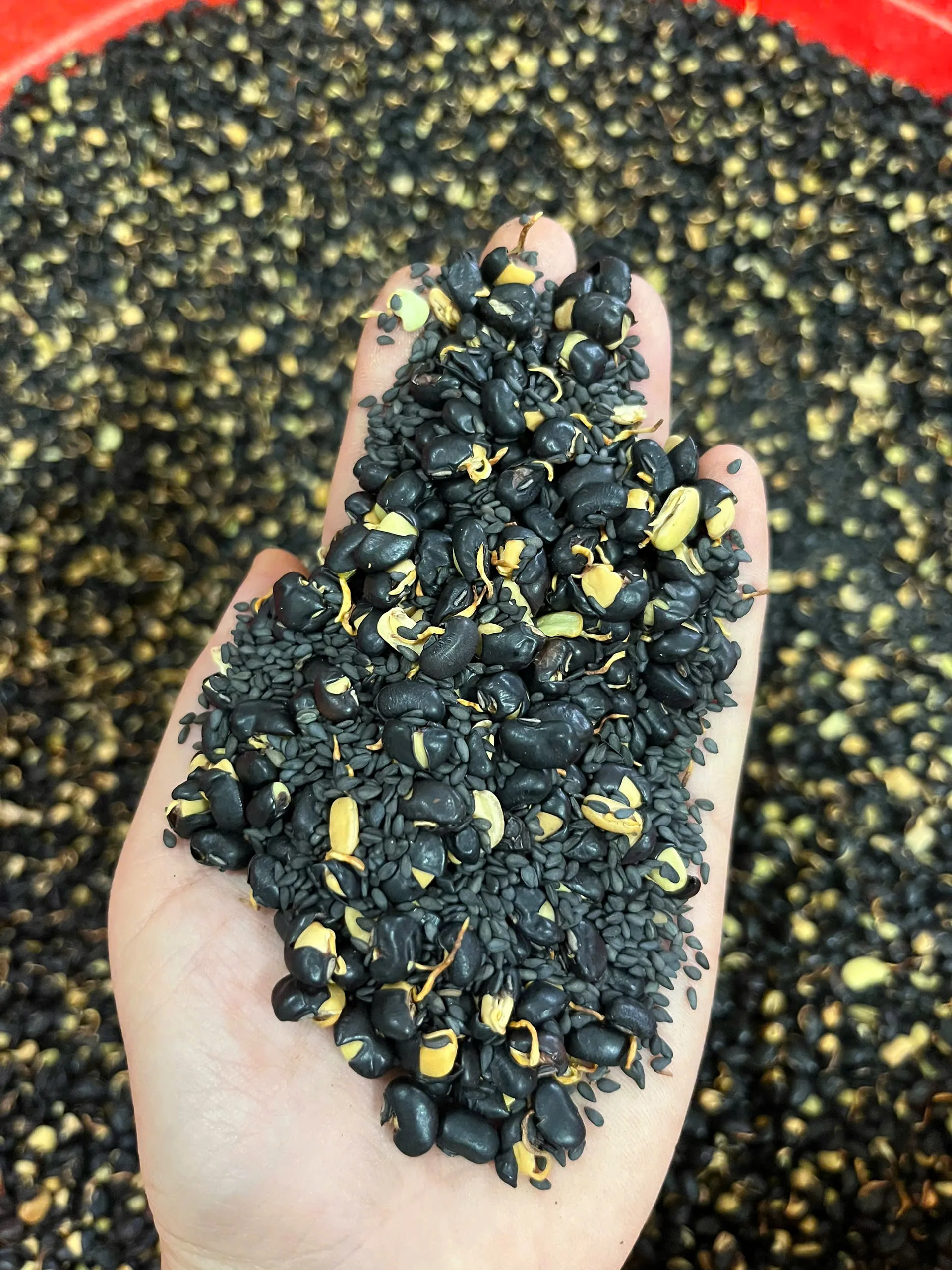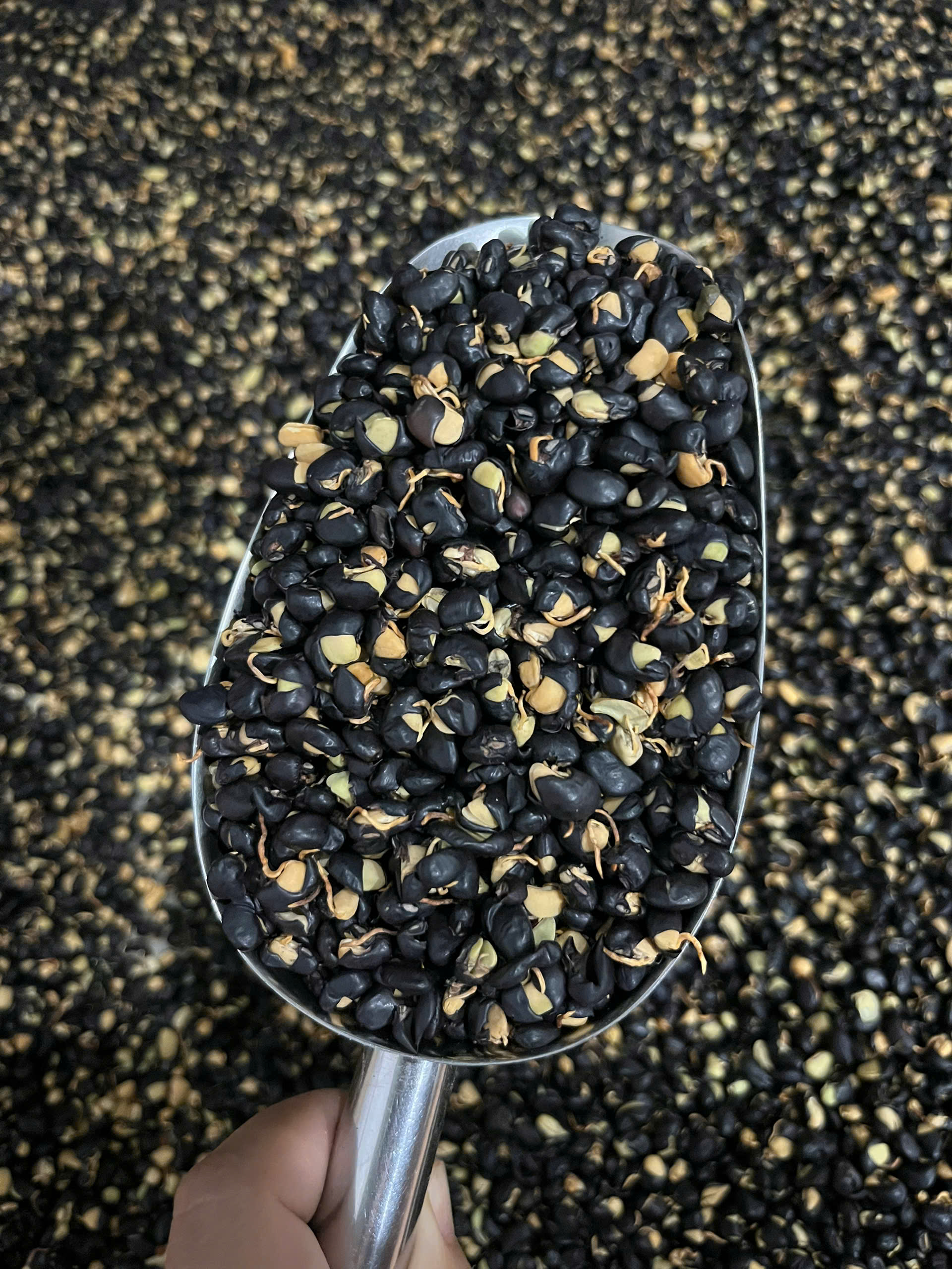 Đậu đen xanh lòng, mè đen sau khi rang thơm